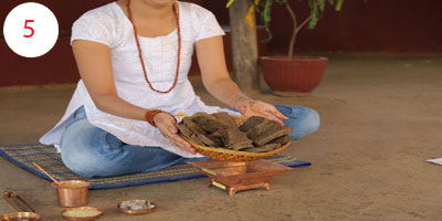 Fire for Agnihotra is to be prepared out of dried cow dung cakes. Cow here means the cow family. Thus the dried dung of calves and bulls may also be used. Cow dung is regarded as highly medicinal and healing substance by Ayurveda and other alternative healing systems. Its possesses anti-bacterial properties, it is used as a pesticide and a fertilizer in farming, etc